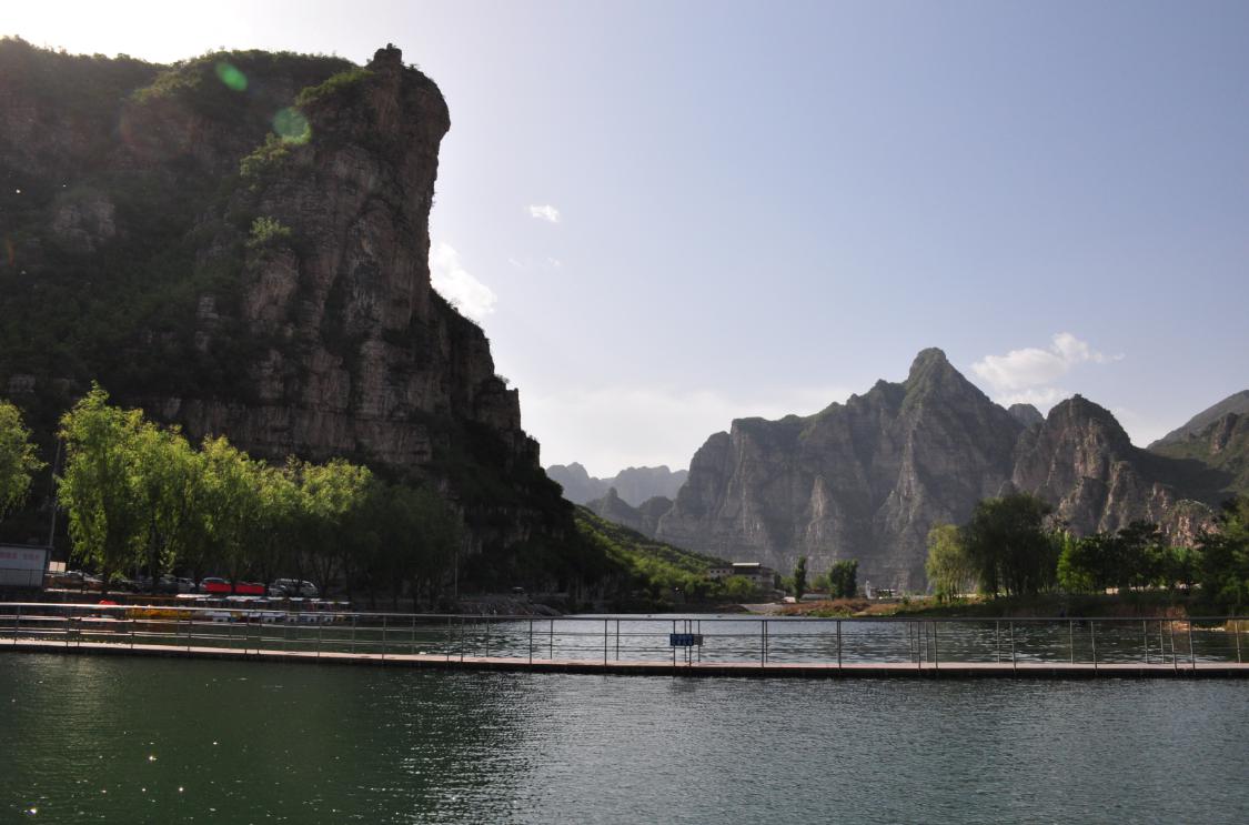 第四站:搖擺孤山鐵索橋:離開孤山寨必須要經(jīng)過這座橫跨拒馬河的鐵索橋,晃晃悠悠,膽小的人心驚肉跳、暈暈的?;螛蝻L(fēng)景,渡上皮筏縮影,湖面平靜如畫,仿佛游走在桂林山水之間。