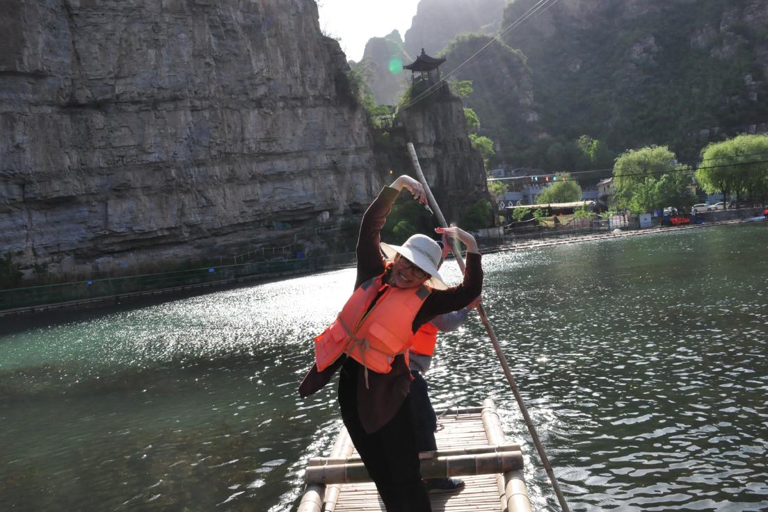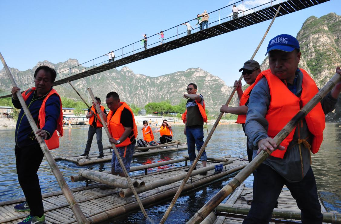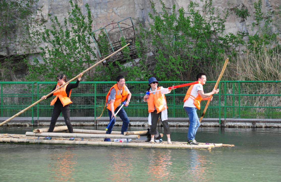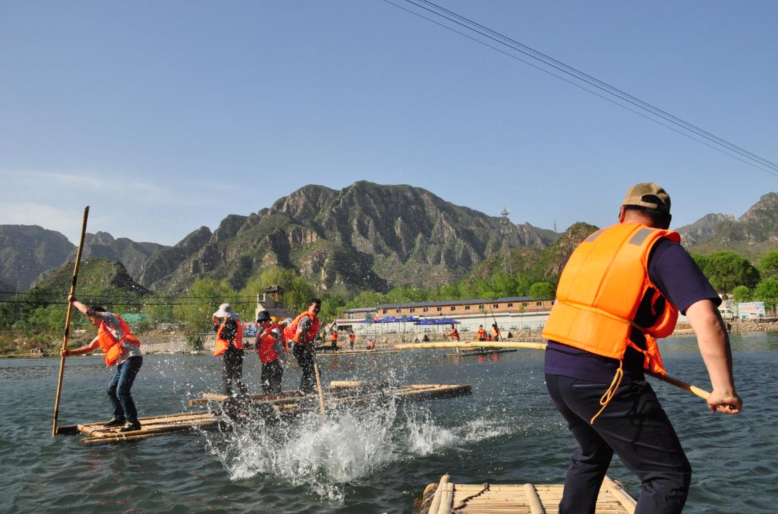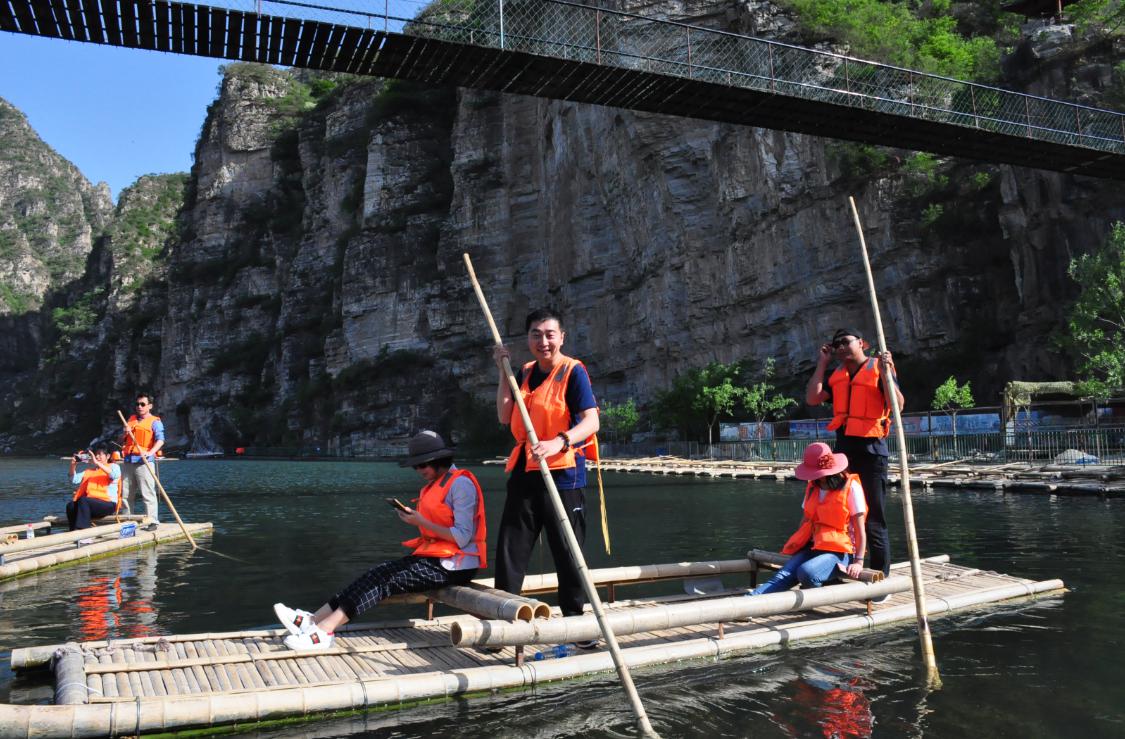 第三站:拒馬河戲竹筏,愛生團(tuán)隊(duì)分成幾組站在竹筏中,悠享春風(fēng)拂面、歡樂伴隨,笑語不斷。