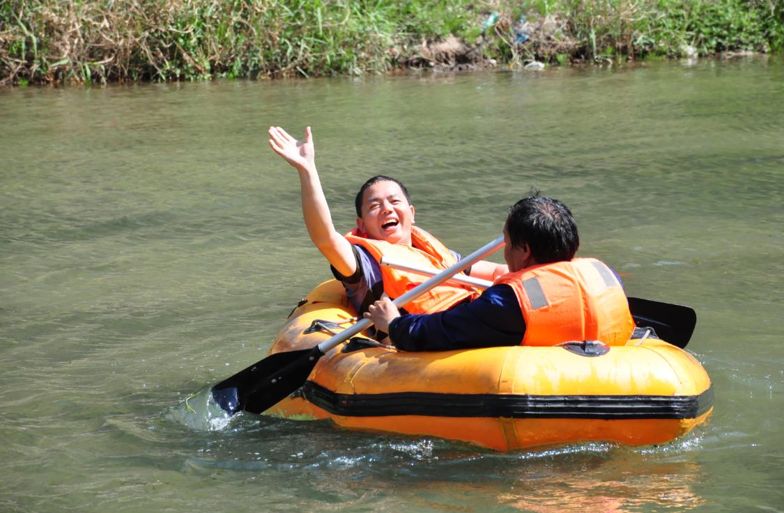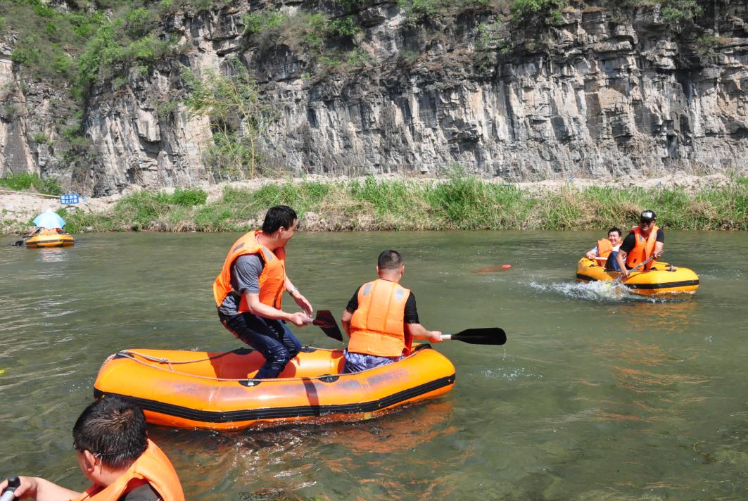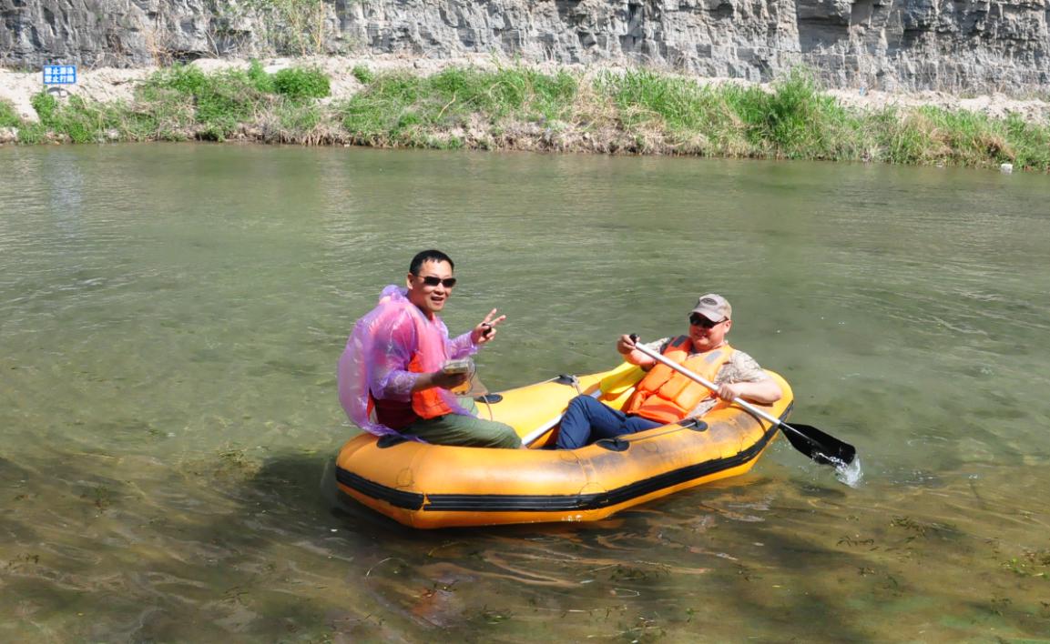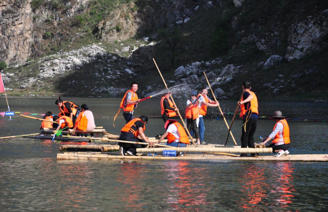 第二站:十渡漂流:坐上皮劃艇,隨波逐流,漂流河道時(shí)而平穩(wěn),時(shí)而湍急,不經(jīng)意之間愛生善戰(zhàn)的勇士開始了激烈的水戰(zhàn),“水炮”讓人防不勝防。當(dāng)天艷陽高招,日光火辣辣,人也有點(diǎn)火爆。年輕的同事們赤身上陣,漂至岸頭時(shí)大家已全部濕身,但開心快樂成為漂流過程的主旋律。